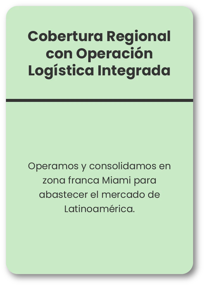 Contamos con una infraestructura en zona franca en Miami, lo que nos permite consolidar inventario y abastecer eficientemente a toda América Latina.